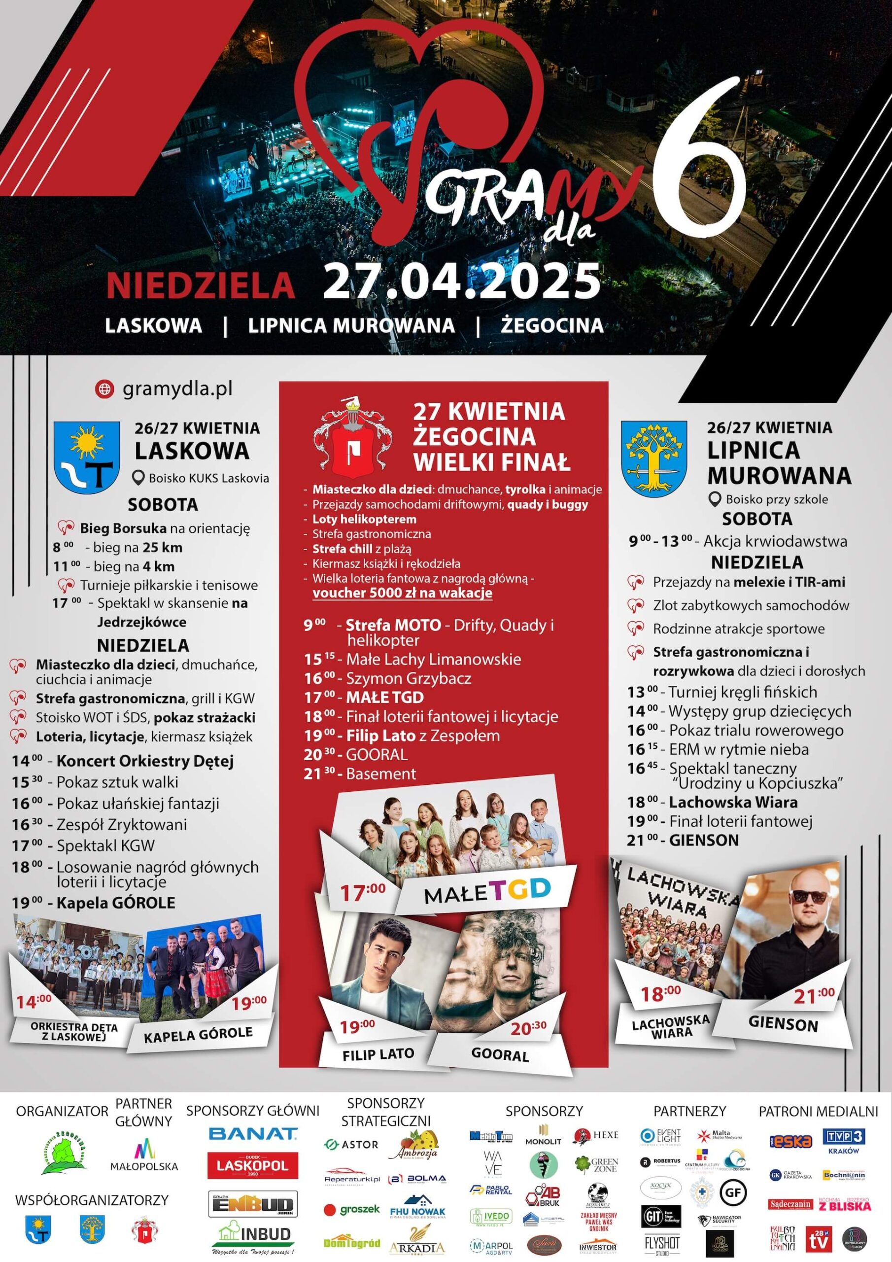Zmiany dotyczą wydarzeń w Gminach Laskowa i Lipnica Murowana – część koncertowa zostaje przesunięta na niedzielę.